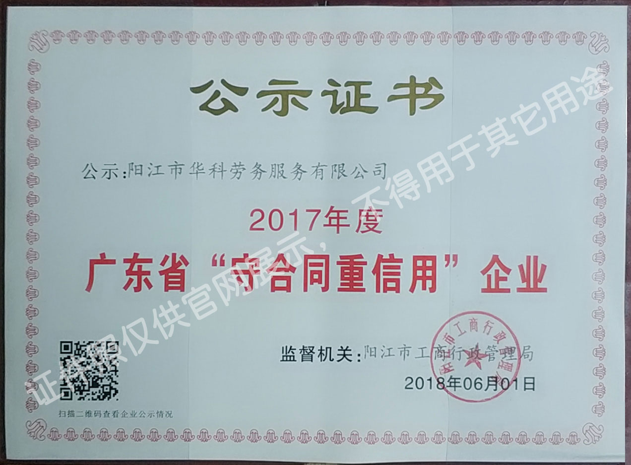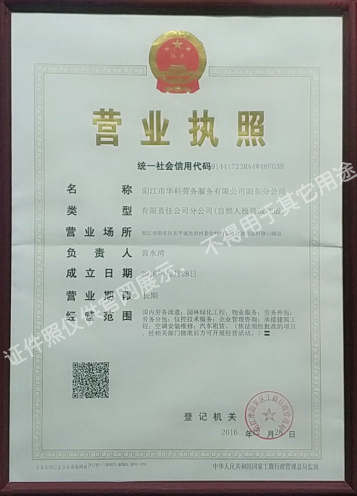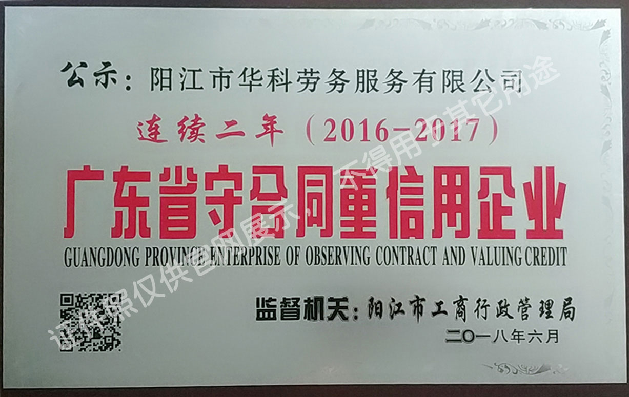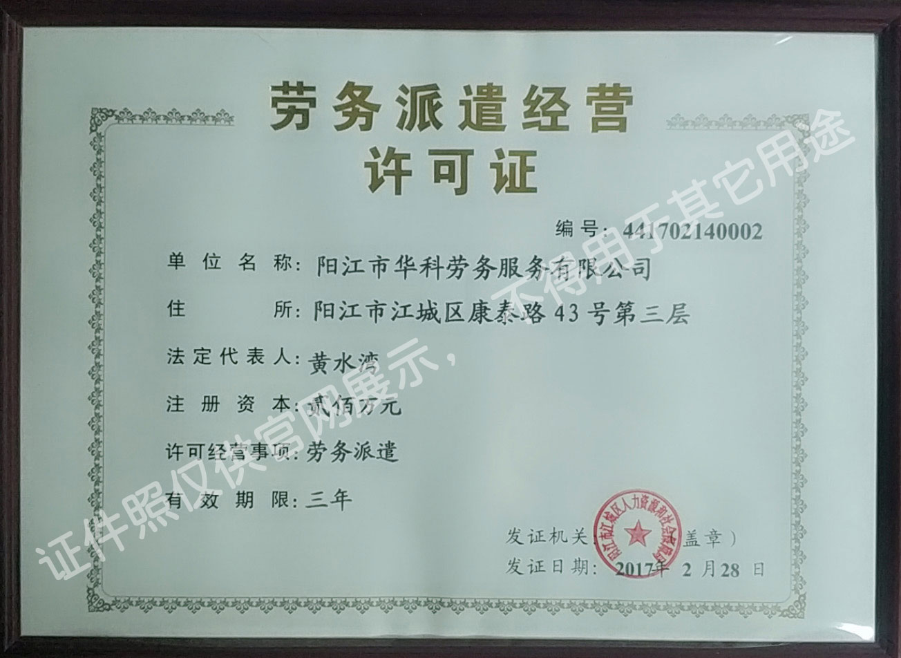 華科勞務服務有限公司是專業(yè)從事人事代理、勞務租賃、人力派遣及管理的綜合性服務機構(gòu),是首批獲得廣東省人力資源廳、陽江市勞動和社會保障局頒發(fā)人力資源許可證的合法單位。公司秉承“誠信務實、專業(yè)熱情、滿意第一、服務社群”的經(jīng)營理念,在勞務派遣業(yè)務的基礎(chǔ)上,更致力于合同制工人(臨時工、實習生、假期工)方向發(fā)展,為用工企業(yè)及時輸送合格的各類人才,合理調(diào)配人力資源的有序流動,幫助求職者尋求更加滿意的就業(yè)渠道和崗位,切實維護求職者的合法權(quán)益。